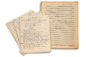 MESSIAEN Olivier (1908 - 1992)MANUSCRIT autographe signé avec exemples musicaux autographes, Technique de mon langage musical (1944) ; 1 f. de titre et 99 pages in-4 (paginées 1-97 avec des bis) ; et 1 f. de titre et 47 pages in-fol. de papier musique (paginées 1-44 plus 9 bis et ter et 13 bis). Important texte théorique avec 382 exemples musicaux, «remarquable ouvrage d'auto-analyse dans lequel le compositeur explique son vocabulaire musical, explore ses origines, fournit une liste d'œuvres (dont plusieurs ont disparu) et juge de ses propres compositions» (P. Hill et N. Simeone). Publié en 2 volumes (un de texte et un d'exemples) en février 1944 par les éditions Alphonse Leduc, l'ouvrage est dédié à Guy BERNARD-DELAPIERRE (1907-1979) ; égyptologue, compositeur de musiques de fi lms sous le nom de Guy Bernard, mais aussi agent et impresario, il soutint Messiaen pendant les années de l'Occupation, après son retour de captivité ; c'est chez lui, rue Visconti, que Messiaen organisa des cours privés d'analyse et de composition pour quelques élèves. Citons le début de l'Introduction, où Messiaen explique son propos : «Il est toujours dangereux de parler de soi. Cependant, plusieurs personnes m'ayant ou vigoureusement critiqué, ou louangé - et toujours à côté et pour des choses que je n'avais pas faites - d'autre part, quelques élèves particulièrement avides de nouveauté m'ayant posé de nombreuses questions relatives à mon langage musical - je me suis décidé à écrire cette petite “théorie”. À part quelques rarissimes exceptions [...], tous les exemples cités ici seront tirés de mes œuvres (passées ou futures !). Dans l'espoir que mes élèves reprendront les quelques idées que je vais développer - soit pour s'en servir mieux que moi, soit pour en tirer autre chose, soit pour les rejeter défi nitivement si l'avenir les prouve non viables - je rédige mon traité en prenant le lecteur par la main, en cherchant avec lui, en le guidant doucement dans les ténèbres où j'ai espéré, vers une lumière restreinte et préparatoire à ce “mieux” qu'il pourra trouver ensuite. Si le lecteur est nanti de solides études d'harmonie, contrepoint et fugue, composition, orchestration, sans oublier la rythmique et l'acoustique, il me suivra beaucoup plus facilement. S'il est appelé par “l'inspiration d'en haut”, et que je me trouve être - sur un tout petit point seulement - son précurseur, ma tâche sera remplie et au-delà»... Malgré l'importance des mélodies et œuvres vocales dans sa production, il parlera peu de «la prosodie et l'union de la ligne musicale avec les infl exions vivantes du parlé», et insistera surtout sur des formes moins usuelles, «notamment les formes plain-chantesques». Son langage musical est considéré «du triple point de vue rythmique, mélodique et harmonique». Il a également écarté ce qui concerne l'instrumentation et le timbre, et ne parlera pas non plus de la musique sacrée, tout en rappelant son inspiration «mystiquement, chrétiennement, catholiquement» religieuse. Il termine en remerciant ses maîtres Jean et Noël Gallon, Marcel Dupré, Paul Dukas, et ceux qui l'ont infl uencé : «ma mère (la poétesse Cécile Sauvage), ma femme (Claire Delbos) [qui remplace son frère le poète Alain Messiaen]», Shakespeare, Claudel, Reverdy, Eluard, Hello, Debussy, «le plain-chant, la rythmique indoue, les montagnes du Dauphiné, et enfi n tout ce qui est vitrail et arc-en-ciel», ses interprètes, ajoutant le nom de la pianiste Yvonne Loriod. «Enfi n, tous ceux qui m'ont incité à écrire cet ouvrage et particulièrement mon ami André Jolivet». L'ouvrage comprend une Introduction, puis les 19 chapitres suivants : I Charme des impossibilités et rapport des diff érentes matières. II Râgavardhana, rythme hindou : 1) Musique amesurée ; 2) Râgavardhana. III Rythmes avec valeurs ajoutées : 1) Valeur ajoutée ; 2) Emploi de la valeur ajoutée ; 3) Préparations et chutes rythmiques ; 4) Rapport avec les notes ajoutées. IV Rythmes augmentés ou diminués et tableau de ces rythmes : 1) Rythmes augmentés ou diminués ; 2) Ajout et retrait du point ; 3) Tableau de quelques formes d'augmentation ou diminution d'un rythme ; 4) Augmentations inexactes. V Rythmes non rétrogradables : 1) Rythmes rétrogradés ; 2) Rythmes non rétrogradables ; 3) Rapport des rythmes non rétrogradables et des modes à transpositions limitées. VI Polyrythmie et pédales rythmiques : 1) Superposition de rythmes d'inégale longueur ; 2) Superposition d'un rythme à ses diff érentes formes d'augmentation et diminution ; 3) Superposition d'un rythme à sa rétrogradation ; 4) Canons rythmiques ; 5) Canon par ajout du point ; 6) Canon de rythmes non rétrogradables ; 7) Pédale rythmique. VII Notations rythmiques : 1) Première notation ; 2) Deuxième notation ; 3) Troisième notation ; 4) Quatrième notation ; 5) Quelques rythmes mesurés. VIII Mélodie et contours mélodiques : 1) Intervalles ; 2) Contours mélodiques ; 3) Chansons populaires ; 4) Plain-chant ; 5)