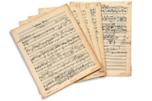 MILHAUD Darius (1892 - 1974)MANUSCRIT MUSICAL autographe signé «Darius Milhaud», ‘adame Miroir, ballet (1948) ; 1 feuillet de titre et 15 pages in-fol. (34,5 x 27,5 cm). Musique de ballet pour Roland Petit sur un livret de Jean Genet. C'est pour les Nouveaux Ballets de Roland PETIT que Milhaud écrivit cette musique, sur un livret de Jean GENET, dont ce fut le seul ballet. La chorégraphie fut confi ée à Janine Charrat, dans un décor de Paul Delvaux et des costumes de Léonor Fini. La création eut lieu au Théâtre Marigny le 30 mai 1948. Roland Petit dansait le Matelot, avec son refl et Serge Perrault (l'Image) et le Domino (ou la Mort) dansé en alternance par Volodia Skouratoff et Léo Auer. Ce fut «monté avec beaucoup de soin et de goût par les Nouveaux ballets de Roland Petit. Un beau décor de Delvaux représentait un labyrinthe tout en glaces, un marin s'y perdait, escorté sans cesse par son double, et il se trouvait subitement en présence de la Mort» (Darius Milhaud, Ma vie heureuse). La critique salua cette œuvre «très charnelle, très trouble, très attachante», comme «le plus puissant ballet que l'on nous ait présenté depuis la Libération». C'est l'opus 283 du compositeur ; la partition fut aussitôt publiée chez Heugel. Ce manuscrit de la «réduction pour piano» est noté à l'encre noire sur papier Parchment Band de Belwin à 20 lignes ; il est signé et daté en fi n «Paris 8 Avril 1948», avec la durée : «Total 18 minutes» ; un minutage détaillé fi gure au dos de la page de titre. La partition comprend cinq numéros. I. Entrée et Danses du Matelot devant les Miroirs (p. 1) ; II. Le Matelot et son Image (Pas de deux), Modéré (p. 6) ; III. Entrée de la Femme (la Mort) et Danse avec le Matelot (Pas de trois), Modéré (p. 8) ; IV. Danse de la Mort et du Matelot (p. 10) ; V. La Mort et l'Image du Matelot (Final), Vif (p. 13). BIBLIOGRAPHIE Edmund White, Jean Genet (Gallimard, 1993), p. 337-338 ; Jean Genet, Théâtre, Bibl. de la Pléiade (Gallimard, 2002), p. 245-253.