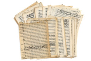 MILHAUD Darius (1892 - 1974)MANUSCRIT MUSICAL autographe signé «Darius Milhaud», 4e Concerto pour piano et orchestre (1949). ; 107 pages in-fol. (38,5 x 28 cm ; petites déchirures au 1er feuillet, et petites déchirures marginales à quelques feuillets). Partition d'orchestre du quatrième Concerto pour piano de Milhaud. Ce Concerto est une commande du pianiste Zadel SKOLOVSKI (1916- 2009), à qui il est dédié. Milhaud le composa à Mills et à Santa Barbara du 12 mai au 23 juin 1949. «Doris Monteux m'envoya à Mills un excellent virtuose, un jeune pianiste, Zadel Skolovski, qui désirait un morceau inédit pour piano et orchestre. Je composai pour lui mon Quatrième Concerto. Il le joua plusieurs fois et l'enregistra sous ma direction à Paris, l'hiver suivant» (Darius Milhaud, Ma vie heureuse). La création en fut donnée à Boston par le dédicataire, avec le Boston Symphony Orchestra, dirigé par Charles Münch, le 3 mars 1950. C'est l'opus 295 du compositeur, qui le publia chez Heugel. Œuvre de haute et expressive virtuosité, ce 4e Concerto «accumule sans répit des avalanches de doubles-croches. Le mouvement lent est intéressant, avec ses thèmes très lents aux trombones, et son expression quelque peu renfrognée. Le tout est imprégné d'une certaine hargne» (Paul Collaer). Ce manuscrit de la partition d'orchestre est noté à l'encre noire sur un papier fi n Maestro des Independent Music Publishers à 24 lignes ; il est signé et daté en fi n «Santa Barbara 16 Août 1949», avec la «Durée totale 18''45». L'orchestre est composé de : 2 fl ûtes, 2 hautbois, 2 clarinettes, 2 bassons, 2 cors, 2 trompettes, 2 trombones, timbales, percussion (la copie de la partie de percussion est jointe au manuscrit), 2 harpes, et les cordes. L'œuvre comprend trois mouvements : I. Animé ; II. Très lent ; III. Joyeux. DISCOGRAPHIE Zadel Skolovski, Darius Milhaud, Orchestre National de la RTF (Columbia 1950).