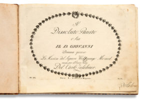 207 pages (environ 21,6 x 30,2 cm), reliure moderne demi-basane fauve ; sous emboîtage demi-maroquin. Rarissime première édition de Don Giovanni, en premier tirage. Titre et musique gravés, liste des «Personen», texte en italien et allemand, signé sur la page de titre par Zulehner. Manque la liste des souscripteurs et la table des matières ; bords un peu rognés par le relieur ; petites déchirures réparées aux bords et aux pp. 97-98 et 107-108, petit trou pp. 143-144, qqs taches). Très rare : c'est le seul exemplaire passé en vente publique dans les deux dernières décennies. Six exemplaires seulement sont connus à Haberkamp. La partition d'orchestre de l'opéra ne sera publiée qu'en 1801. BIBLIOGRAPHIE Gertraut Haberkamp, Die Erstdrücke der Werke von Wolfgang Amadeus Mozart (Tutzing, 1982), p. 292 ; RISM M 45004.