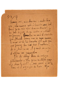 RAVEL Maurice (1875 - 1937)L.A.S. «Maurice Ravel», [Châlons-sur-Marne] 5 mars 1917, à Lucien GARBAN ; 2 pages in-12. Ils ont bavardé tard : «Quand je me suis retiré dans ma chambre, je me suis dépêché de me coucher en oubliant ma...