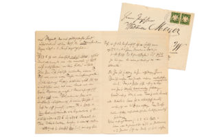 REGER Max (1873 - 1916)L.A.S. «Max Reger», Berg am Starnberger See 24 août 1904, au Prof. Waldemar MEYER à Berlin ; 3 pages et demie in-8 à son en-tête, enveloppe ; en allemand. Sur ses nouvelles œuvres de musique de chambre, au violoniste Waldemar MEYER (1853-1940) : la Sonate pour violon et piano n° 4 en ut majeur op. 72, le 2e Quatuor à cordes en ré mineur op. 74, et le premier Trio à cordes op. 77b. En effet, les opus 72 et 74 ne sont pas des morceaux faciles («nicht leicht zu behalten»). Reger remarque qu'il est musicien depuis sa plus tendre enfance, avant d'avoir 10 ans il a joué le grand, grand Sébastien [Bach] dans ses plus grandes créations pour orgue sur l'orgue, et il peut suivre maintenant son propre chemin. Il n'est pas un subversif par principe, et il ne peut guère y avoir d'admirateur plus ardent des grands maîtres anciens que lui - alors que depuis la mort de Brahms les compositeurs s'enfoncent de plus en plus dans le marécage du poème symphonique et que même de beaux talents y périssent...Personne ne désire plus que lui voir renaître un Mozart qui nettoie d'une main divinement légère tout le gâchis qu'ont produit les incompris Wagner, Liszt et R. Strauss ! «ich bin seit frühester Jugend Musiker, habe in einer Zeit als ich noch nicht 10 Jahre alt war, den großen großen Sebastian [Bach] in seinen größten Orgelschöpfungen „auf“ der Orgel gespielt, und kurzum, daß ich meine eigenen Wege gehe - das ist kein Fehlen; ich bin nicht “Umstürzler” aus Prinzip - es kann nicht leicht einen glühenderen Bewunderer für die alten Meister als mich geben - während die großen alten Meister, u. die Erkenntnis, daß seit Brahms' Tode unsere Komponisten immer mehr im “„Sumpf” der symphonischen Dichtung untergehen u. sogar schöne Begabungen an diesem “Irrlicht” zu Grunde gehen - gerade diese 2 Gründe haben mich zu dem gemacht, der ich heute bin ! Glauben Sie mir, niemand wünscht mehr, als ich das Wiedergeboren werden eines Mozart, der mit göttlich-leichter Hand aufräumt mit all dem Wust, den mißverstandener Wagner, Liszt u R. Strauss gezeitigt haben !» Son op 77 b est fabuleusement simple et clair. Il a ainsi donné une petite leçon à tous ceux qui l'accusent toujours de ne pas savoir écrire («Mein op. 77 b ist nun fabelhaft einfach u klar; ich hab' damit all denen, die mir immer vorwerfen, ich könnte nicht einfach schreiben, eine kleine “Lektion” ertheilt !»... Il est reconnaissant à Meyer de s'occuper de ses nouvelles œuvres. Il a écrit à Leipzig pour y faire une soirée avec le programme d'Essen ; et il espère que Meyer organisera à Berlin une soirée de musique de chambre, avec, par exemple, outre l'op. 77 b, il y aurait l'op. 77, une Sérénade pour flûte, violon et alto, et aussi l'opus 74. Ce serait le «non plus ultra !»...