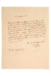 ROSSINI Gioacchino (1792 - 1868)L.A.S. «G. Rossini», [Paris] 9 avril 1833, à la comtesse MERLIN ; ¾ page in-4, adresse ; en italien. Il reçoit une lettre de Mme Leo qui lui rappelle qu'il doit déjeuner chez elle le surlendemain, comme il l'avait promis quinze jours auparavant ; or, quand la comtesse lui fi t une invitation pour le même jour, ce lui fut une si douce surprise qu'il en oublia l'engagement pris précédemment : il devra donc se priver du plaisir de voir la comtesse jeudi....