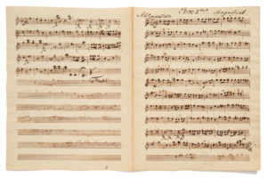 SCHUBERT Franz (1797 - 1828)MANUSCRIT MUSICAL autographe, Magnifi cat. Oboe Imo, [1815] ; 3 pages et demie petit in-fol. d'un bifeuillet (29,3 x 22, 8 cm). Partie complète du premier hautbois dans le Magnifi cat D.486. C'est en septembre 1815 (la...