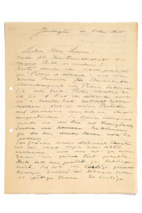 SIBELIUS Jan (1865 - 1957)L.A.S. «Jean Sibelius», Järvenpää 5 mai 1905, à Robert LIENAU ; 2 pages in-4 (trous de classeur dans la marge) ; en allemand. À son éditeur, au sujet de ses œuvres. Il lui envoie la partition d'orchestre de Pelléas...