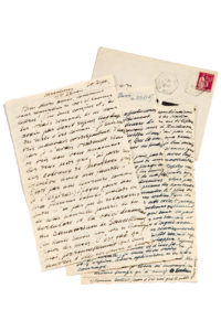 STRAWINSKY Igor (1882 - 1971)2 L.A.S., 1937, à Mrs. Dagmar GODOWSKY à New York ; 2 et 4 pages in-8, enveloppe avec le nom biffé. Belles lettres à son amie l'actrice. [Dagmar GODOWSKY (1897-1975), fille du pianiste Leopold Godowsky, fut une des stars du cinéma muet.] Sancellemoz 30 septembre. Il s'excuse de n'avoir pas répondu à ses si bonnes lettres : «je suis un très mauvais correspondant» ; mais il vient de passer deux mois bien difficiles près de Genève avec sa famille : «ma femme tombée malade en juin n'a pas pu se débarrasser de cette nouvelle poussée de tuberculose et la voici de nouveau au sanatorium de Sancellemoz pour des mois. C'est gai ça !»... Il revient de Venise où il a dirigé «Jeu de cartes au concert - avec un très grand succès»... Il s'étonne de n'avoir pas de réponse de CHAPLIN qu'il avait rencontré lors de son séjour en Amérique, «ni à ma lettre ni à celle de Speiser. Innoui !»... Il sera les deux prochains mois en voyages de concerts (London, Amsterdam, Suisse, Naples, Bucarest, etc.)... Paris 29 décembre. Vœux pour la nouvelle année ; il a été très préoccupé par la santé de sa femme : «j'ai eu très peur ces derniers mois que sa rechute ne prenne des formes graves». Heureusement les excellents docteurs qui la suivent se montrent rassurants depuis quelques temps : «Je veux bien croire et j'espère ; leur optimisme m'encourage. J'étais d'autre part tout ce dernier temps en voyage : une série de concerts en Angleterre, Hollande, Italie et les pays de la Baltique. [...] Voilà la raison de mon long silence. En plus tout le monde sait que j'ai toujours été un très mauvais correspondant»... Il va bien et a repris, après ces voyages, son travail de composition : «un concerto für Kammerorchester, dont la première exécution est réservée par Mme Bliss de Washington. Nadia BOULANGER qui va en Amérique dans un mois va diriger cette composition chez elle là-bas avec l'Histoire du Soldat et Doushkin va prendre part dans cette soirée privée (en jouant dans le “Soldat” et aussi des petits morceaux de moi). Tout cela en mai». C'est par Nadia Boulanger qu'il est entré en contact avec le violoniste Samuel DUSHKIN [le grand violoniste américain], auquel il a écrit «que j'étais en pourparlers avec Copley pour la saison prochaine mais que je chargeais Copley uniquement des engagements symphoniques ne pouvant plus participer dans ces joint-concerts parce que cela faisait plus de tort que de bien à Dushkin lui-même comme solist (car c'est moi que le public venait voir)», et aussi parce que ces concerts ne rapportent pas assez... Depuis, pas de nouvelles de Dushkin, il espère qu'il n'est pas offensé... Il est fort probable qu'il vienne l'an prochain en Amérique, «si Copley m'arrange une bonne saison symphonique avec un bon engagement à l'NBC qui pour le moment garde en ce qui me concerne (comme Hollywood) un silence morne». Il ne perd cependant pas l'espoir de la revoir «et de renouveler nos bons repas chez Marusi et de boire de nouveau ce vin noir de Californie»...