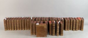 Nouvelle édition de l'Encyclopédie avec les suppléments refondus en un ordre unique et en format plus maniable que la première, in-folio. Elle offre le texte complet en fine typographie. Les 3 volumes d'illustration sont complets moins une planche de chimie et il y a 68 planches d'architecture sur 85 annoncées. Accident à quelques coiffes et à deux dos avec manque. Provenance : Bibliothèque de l'hôtel de Jarnac