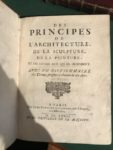 FÉLIBIEN André. Des principes de l'architecture, de la peinture et des autres arts qui en dépendent. Paris, J.B. Coignard, 1676 ; fort volume in-4, veau brun de l'époque, dos à nerfs orné, coiffe fatiguée, mors fendus.