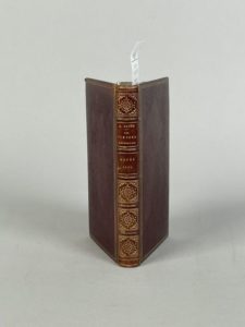 ANCELIN Pierre. Les Pieuses Récréations remply de sainctes joyeusetez & divertissemens pour les âmes dévotes. Rouen, vve du Bosc,1633 ; petit in-12 maroquin prune, filets dorés, dos à nerfs orné de motifs dorés, dentelle intérieure et tranches dorées.