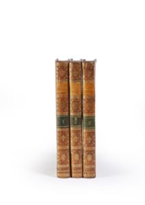 [HOLBACH Paul-Henri Thiry d']. La morale universelle. Ou les Devoirs de l'homme fondés sur sa nature. Amsterdam, Marc-Michel Rey, 1776 ; 3 volumes in-8, reliures de l'époque veau marbré, chaînette dorée sur les plats, dos lisses ornés de motifs dorés, pièces noires et orange.