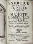 IMPRESSION DE VIENNE (Autriche). R. P. Simon STOCK. Exercice journalier de piété à l'usage de S. M. l'Impératrice reine de Hongrie et de Bohème. Traduit de l'allemand en françois. Vienne, J.J. van Ghelen, 1750 ; in-12, frontispice, [6]ff., 257[+1] pages, [+1]f., basane brune de l'époque, dos lisse muet orné de motifs dorés.