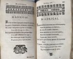 Édition originale. L'auteur était l'époux d'une célèbre amie de La Fontaine. Ses madrigaux durent plaire car ils furent réédités en 1758. Exemplaire de premier tirage, avec le mot Madrigaux au bas du 4e feuillet préliminaire (au lieu de Madriga). Provenance : Bibliothèque de Jean-Claude Carrière