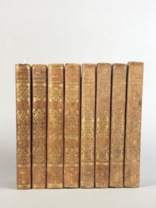 MONDE DRAMATIQUE, LE. Revue des spectacles anciens et modernes. Paris, 1835-1839 ; 8 volumes grand in-8 demi-basane violine de l'époque, dos lisses ornés de motifs dorés, passés, le dernier un peu dédoré.