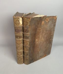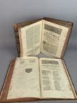 PASQUIER Étienne. Les oeuvres contenant ses Recherches sur la France, son plaidoyé pour M. le duc de Lorraine, celuy de Me Versoris pour les Jésuites, ses lettres, ses oeuvres meslées et les lettres de Nicolas Pasquier fils d'Étienne. Amsterdam, Cie des Libraires associés, 1723 ; 2 forts volumes in-folio, veau brun de l'époque, dos à nerfs ornés, accrocs aux reliures qui restent solides.