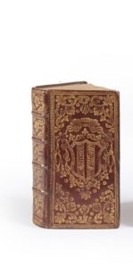 RELIURE. OFFICIUM HEBDOMADÆ SANCTÆ Venise, N. Pezzana, 1744 ; petit in-12, reliure italienne de l'époque maroquin rouge entièrement ornée de motifs dorés, armes décorées au centre des plats, dos à 4 nerfs très orné, tranches dorées.