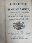 RELIURE. OFFICE DE LA SEMAINE SAINTE en latin et en françois imprimé par ordre de Madame. Paris, …