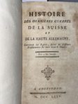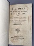 HISTOIRE DES DERNIÈRES GUERRES DE LA SUISSE et de la Haute Allemagne Amsterdam, 1775 ; 2 volumes in-12, veau tacheté de l'époque, dos lisses ornés de motifs dorés, pièces rouges. Provenance : Bibliothèque de l'hôtel de Jarnac
