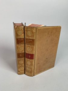 YOUNG Arthur. Voyage agronomique, précédé du Parfait fermier. Paris, Panckoucke, 1774 ; 2 volumes in-8, reliures de l'époque veau blond, filets dorés, dos lisses ornés de motifs dorés, pièces brunes.