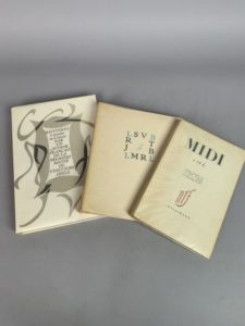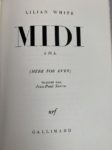 MIDI À 14 H[EURES]. Liliane White [Pierre BETTENCOURT]. Ibid., id., 1945. Édition originale de cette supercherie générale ou toutes les indications sont fausses : auteur, éditeur, imprimeur, préfacier, citations Quatre dessins de Savignac gravés dont un prétendument de Jean Hugo. Cf le catalogue Pierre Bettencourt Les désordres de la mémoire, page 67-69. Papier vélin. Provenance : Bibliothèque de Jean-Claude Carrière