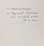 LE REMPART DES BRINDILLES. Paris, L. Broder, 1953. Un des 30 ex. d'auteur sans les gravures. ENVOI À RAYMOND QUENEAU.