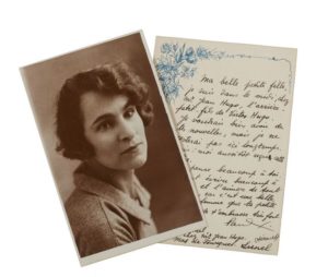 Un des 50 exemplaires du tirage de tête sur papier vélin de Hollande, celui de Jean-Claude Carrière. Il y est ajouté une photographie originale de Gala jeune (« Ateliers Jérôme », 127 x 80 mm) et une lettre autographe de Paul Éluard à sa fille Cécile, très affectueuse (écrite de chez Jean Hugo à Lunel). Provenance : bibliothèque de Jean-Claude Carrière.