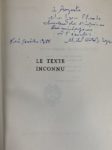 LE TEXTE INCONNU. Minuit, 1948. Envoi à J. C. Carrière.