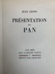 GIONO Jean. Réunion de cinq ouvrages in-12 et in-4 brochés. PRÉSENTATION DE PAN. Paris, B. …