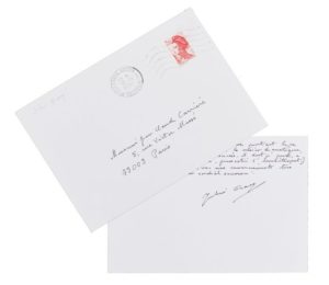 Au sujet du Mahabharata l'épopée indienne que Carrière venait d'adapter en français : « J'ai admiré l'énorme et difficile travail de resserrement et d'ébranchage et tous les problèmes de langue et de vocabulaire qui se posaient Le foisonnement de l'original subsiste pourtant ». Provenance : bibliothèque de Jean-Claude Carrière.