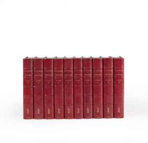LABICHE Eugène. Théâtre complet. Préface par Émile Augier. Paris, Calmann-Levy, 1878-1879 ; 10 volumes in-12, demi maroquin rouge de l'époque, dos à nerfs, monogramme doré en queue, têtes dorées, couvertures (Franz).
