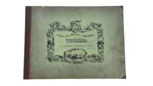 [ITALIE / VENISE]. CECCHINI (Giovani Batista), PIVIDOR (Giovani) & VIOLA (Tommaso). — Vedute dei principali monumenti di Venezia. — Venezia, Presso E. Testolini, Editore, s. d. [1860]. — In-4° oblong, demi-toile brune et cartonnage vert...