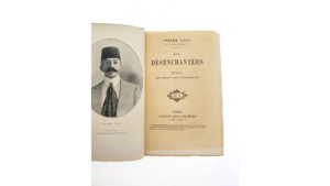 LOTI (Pierre). — Les Désenchantées. — Roman des harems turcs contemporains. — Paris, Calmann-Lévy, Éditeurs, s. d. [1906]. — In-12, maroquin vert janséniste, gardes de moire verte, dos lisse, tête dorée, non rogné, couverture...