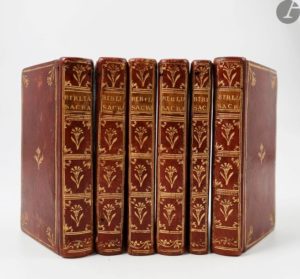 Cologne : Jacobum Naulæum, 1679. — 6 volumes in-24, maroquin rouge, filet gras doré en encadrement et fleur dorée au centre et aux angles sur les plats, dos lisse orné, roulette dorée intérieure, tranches dorées (reliure du XVIIIe siècle).