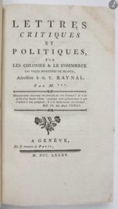 Lettres critiques et politiques, Sur les colonies & le commerce des villes maritimes de France, Adressées à G. T. Raynal.
