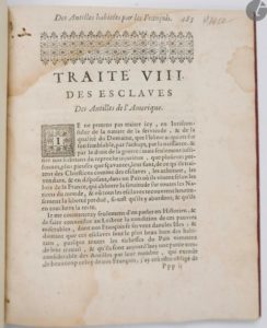 Traité VIII consacré aux esclaves d'Amérique, extrait de l' « Histoire générale des Antilles habitées par les françois » de Jean-Baptiste Du Tertre, publiée entre 1667 et 1671. Cet ouvrage est considéré comme « la première de toutes les sources de l'histoire des Antilles » (Dampierre, 124-125).