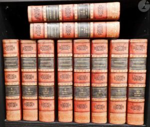 Splendide exemplaire en reliures de l'époque très décoratives. Seuls les 69 premiers volumes sont reliés, les autres ont été conservés brochés, tels que parus.