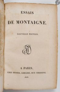MONTAIGNE (Michel de). Essais. Nouvelle édition. Paris : Desoer, 1818. — In-8, demi-maroquin …