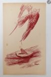 Un des 350 exemplaires de têtes sur vélin d'Arches, les seuls à être enrichis d'une seconde épreuve du frontispice, tirée en mauve et signée par l'artiste dans la pierre.