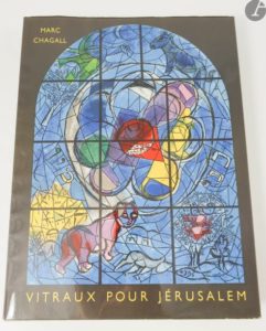 Bel ouvrage imprimé par Draeger, Mourlot et l'Imprimerie Nationale comprenant la reproduction en noir et en couleurs des projets, maquettes et dessins de Marc CHAGALL pour la réalisation des vitraux de Jérusalem.