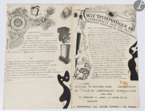 Programme, avec carte d'inscription détachable, se rapportant à un cycle de 4 conférences surréalistes qui n'eurent jamais lieu.