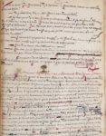 Il présente de nombreuses ratures, suppressions, corrections et additions, aux encres ou au crayon. Des brouillons de premier jet, au crayon, abondamment raturés et corrigés, se lisent au verso des ff. 17, 34 et 36 ; on relève des comptes domestiques au verso des ff. 26 et 32. Le texte présente de nombreuses variantes par rapport à la version publiée ; le capitaine Rançonnet qui surprend Mesnilgrand dans l'église au début de la nouvelle se nomme Ranconnant dans les premiers feuillets et prend ensuite son nom définitif ; le major Ydow se nomme ici Ydou.