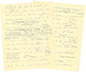 Ce manuscrit est abondamment corrigé, avec de très nombreuses lignes biffées, des reprises et de multiples ratures avec modifications. Le texte est très différent de la version finale et présente de nombreux passages inédits.
