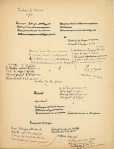 * [Rome la nuit] (1 p. in-fol. sur papier surfin, fente). Manuscrit de travail abondamment corrigé de ce poème écarté de Vocabulaire (OEuvres poétiques complètes, Pléiade, p. 342).