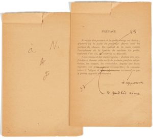 Poésie. Morceaux choisis [Paris, Librairie Gallimard, 1930]. Épreuves corrigées, in-12, en feuilles (papier fragile, quelques petites déchirures) ; sous emboîtage demi-maroquin bordeaux, dos lisse titré or. Épreuves corrigées de cette anthologie, avec de nombreuses corrections autographes de Jean Cocteau. Envoi autographe signé en tête : «à N. [étoile] J». [Il s'agit probablement de Natalie PALEY.] Les feuillets ont été légèrement fendus dans le haut après intégration des corrections à l'imprimerie.