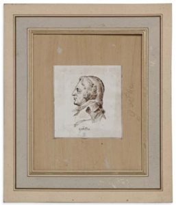 [GOETHE Johann Wolfgang von (1749-1832)]. PORTRAIT original, dessin à la plume et lavis d'encre brune, légendé