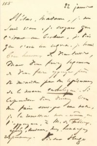 HUGO Victor (1802-1885). L.A.S. «Victor Hugo», 22 janvier, à une dame ; 1 page in-8.