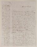 La toute première lettre, «Pour remettre à la personne», est une déclaration en forme, faite le 14 août (un peu déchirée et réparée, elle était conservée avec l'enveloppe et les fleurs séchées montées en tête du volume) : «J'ose vous supplier Mademoiselle de ne pas juger avec sévérité la démarche à laquelle la nécessité me force de recourir, et de lire au moins cette lettre jusqu'au bout. Je n'ai pu vous voir sans vous aimer, et chaque jour comme chaque parole a contribué depuis, à fortifier en moi ce penchant d'abord involontaire, mais que la raison et la volonté approuvent également aujourd'hui. Je ne puis me résoudre à m'éloigner sans vous l'avoir au moins découvert. Je sais qu'il eût été plus convenable de commencer par en parler à d'autres qu'à vous, mais je sais aussi que d'après la différence de relligion et de patrie qui est entre nous, mes premières démarches auprès de Madame votre mère auroient été probablement repoussées au premier abord, et comme le bonheur de ma vie dépend du succès de ces démarches, il falloit que je m'assurasse auparavant de vos propres sentiments, et que j'obtinsse de vous-même la per[mission] de les entreprendre»... Il fait allusion à son ancienne passion pour Julie Charles : «aucun obstacle ne peut être aussi fort que le sentiment qui me guide ; ce sentiment que j'ai connu une fois dans ma vie, n'a pu être arraché de mon coeur que par la perte de ce que j'aimois ; depuis ce tems, j'ai vécu dans une profonde indifférence ; mais je vous ai connue, j'ai trop apprécié en vous tant de qualités parfaites, tant de rapports entre nos goûts et nos sentiments, tant de perfections inconnues peut-être même à vous-même, pour ne pas sentir que je serois le plus heureux des hommes d'obtenir votre main et d'unir mes jours et ma destinée à la vôtre !»...