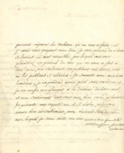 Je soumets mon avis à vos lumières ; je ne prendrai aucun parti sans vos ordres, et je me confie aveuglément à la droiture de vôtre coeur, et aux sentiments dont vous avez bien voulu m'honorer»... Il ajoute de sa main la formule finale : «votre tres humble et obeissant serviteur Voltaire».