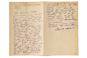 Claude MONET (2 pièces), SAINTE-BEUVE (2 pièces), Jacques-Bénigne BOSSUET (1 pièces), Jean COCTEAU La machine à écrire nrf, Michel BUTOR et Annne WALKER Le soin sur la plage à Hendaye 2/8 (1 pièce).