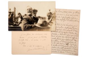 Jules RENARD (1 pièce), Edmond ABOUT (1 pièce), Francis de CROISSET (2 pièces), Emile FAGUET (1 pièce), Alfred ASSOLANT (1 pièce), Edmond GONDINET (2 pièces), Charles PERROT (1 pièce) et carte postale représentant Franklin ROOSEVELT.