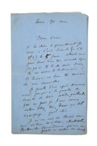 L..A.S., Tunis 20 mai [1858]., adressée à Ernest FEYDEAU. 2 pages in-8, sur papier bleu (pliures).